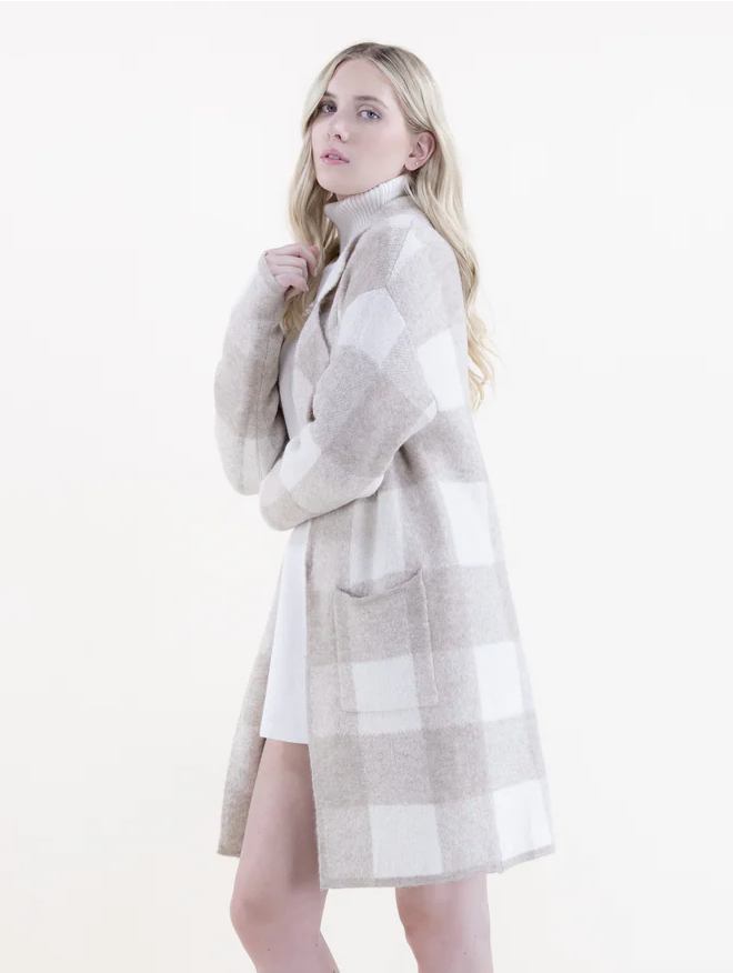 Plaid Coatigan-Beige